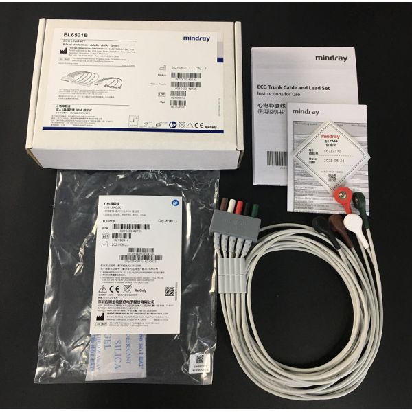 Mindray EL6501B ECG Leadset 5-lead leadwires, adult,AHA, Snap Images |